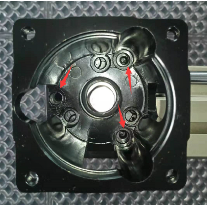 2. 取下伺服电机和45#刚性联轴器后锁紧 三颗电机座固定螺丝。